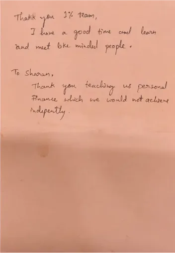 The 1% Club is one of India’s largest finance communities. We offer more than just a course. As a lifetime membership, you gain access to offline events across India, a lively social media platform connecting finance enthusiasts, and the latest financial news. With a focus on implementing knowledge through our financial tools, our community is comprised of experienced members who excel in their fields, earning over 10 lakh per year.